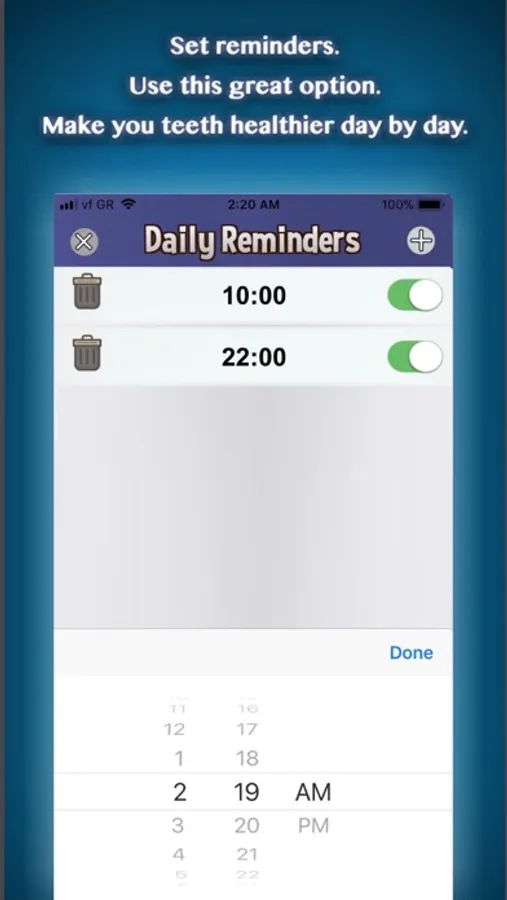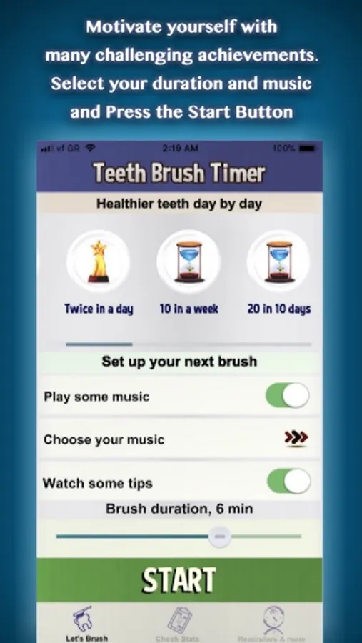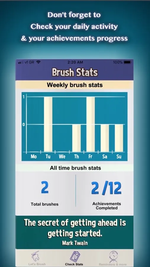 motivate yourself with many challenging tooth brushing achievements and check your daily activity, in a wonderful statistics graph!
