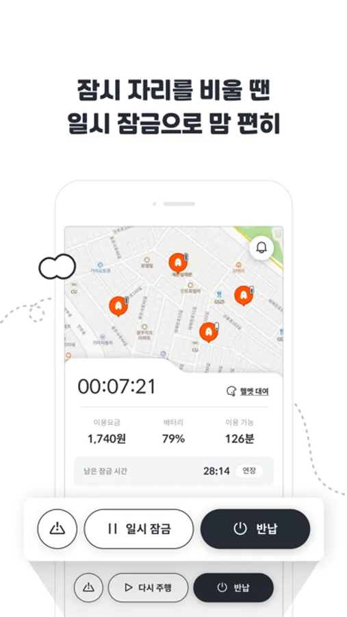 4.목적지에 도착하면 안전한 곳에 주차 후 사진과 함께 반납하면 끝.참 쉽죠?
