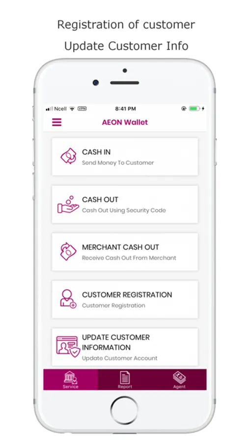 o Agent is allowed to transfer fund to AEON Wallet customer accounts and receive fund for cash out from Customer
