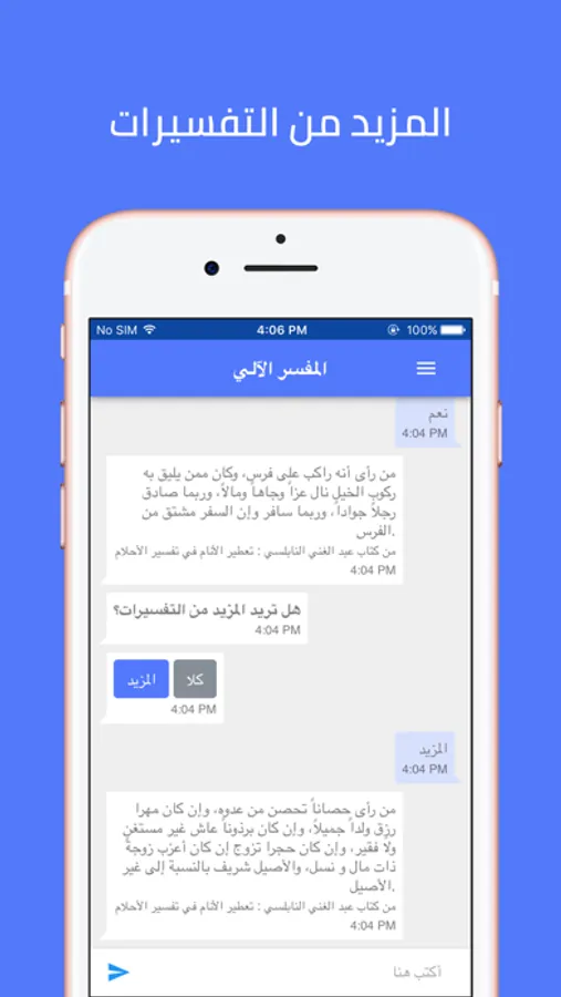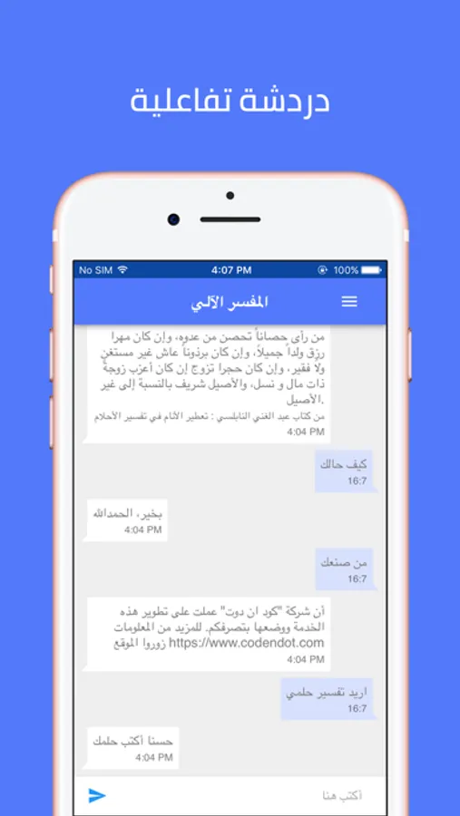 اذا كنت ممن يفضلون المحادثات التفاعلية فلم لا تجرب المحادثة (دردشة أو شات) الآلية مع روبوت متخصص بتفسير الأحلام؟ لاستكشاف هذه الميزة من الذكاء الاصطناعي، تطبيق شات لتفسير الأحلام سيفي بالغرض.