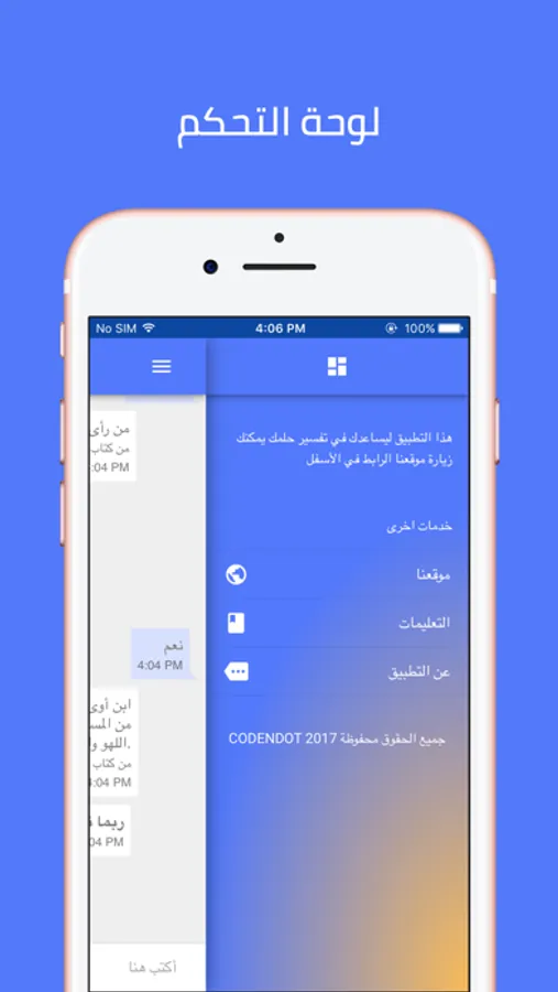 - هذا التطبيق طُوّر بواسطة شركة كود ان دوت، يمكنك زيارة الموقع لمزيد من التفاصيل: www.codendot.com