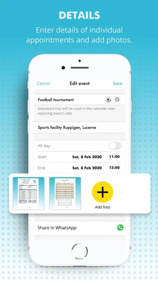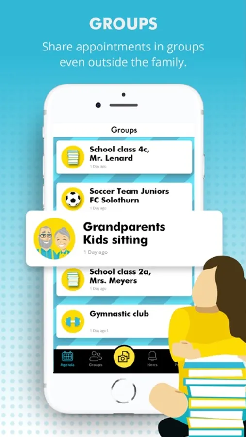 > Open a group in SHUBiDU, enter appointments and share the group with friendly parents.