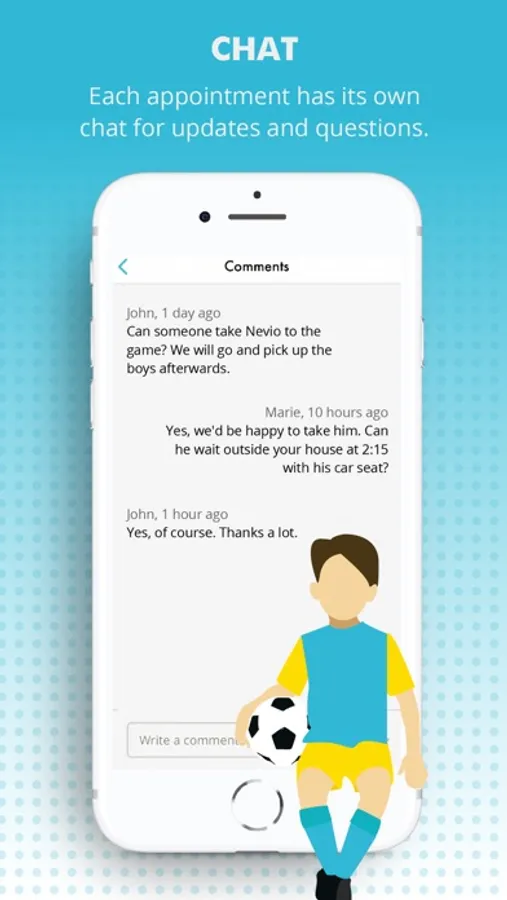 > Great time saving when common appointments of school, sports, club can be shared with other parents.