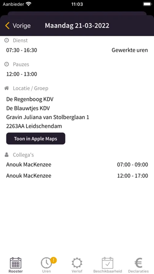 Je kunt met Quebble Pro eenvoudig je urenadministratie bijhouden. Op de planning zie je precies waar je moet werken en ook met wie. Uiteraard wordt je verlof op een intuïtieve manier grafisch weergegeven.