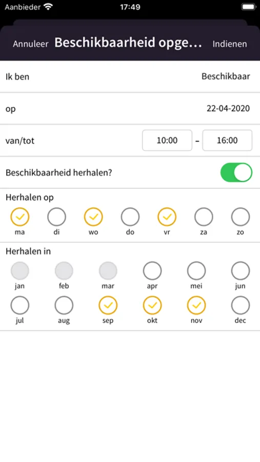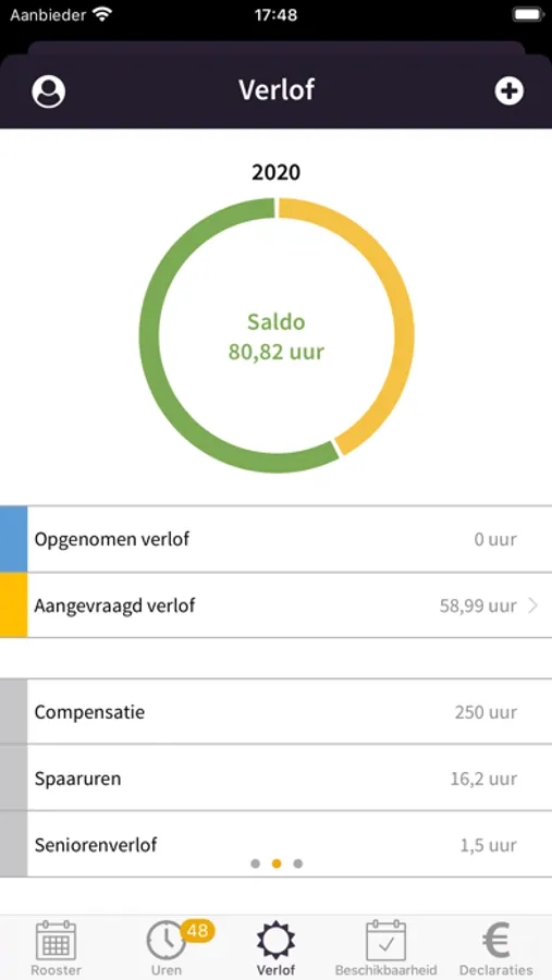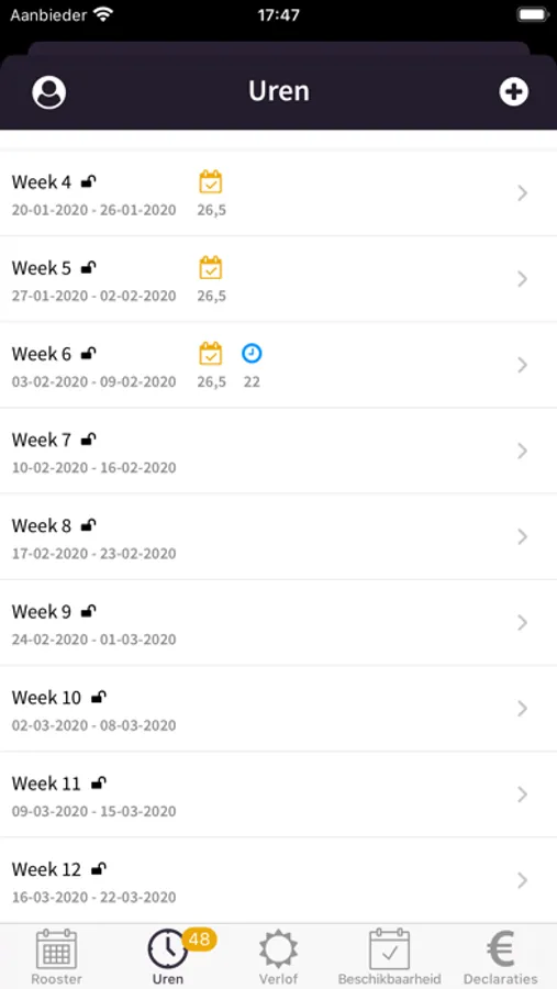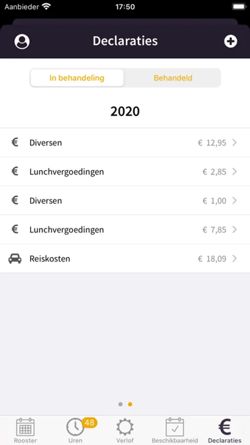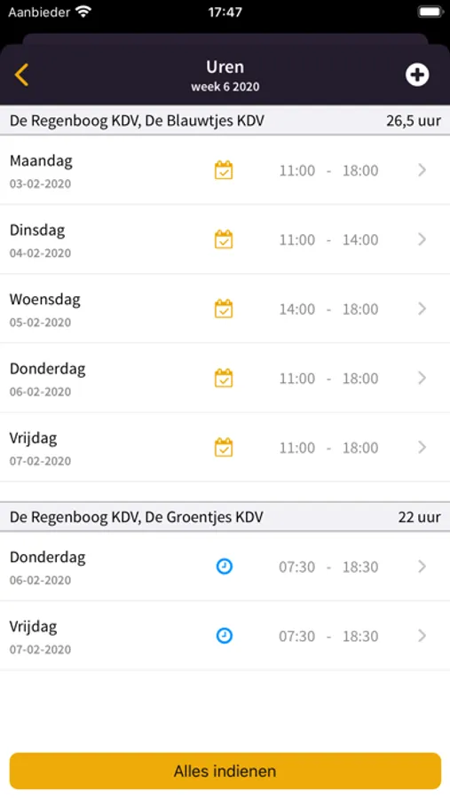 Extra gewerkt? Klik op het plusje voor een extra dienst!