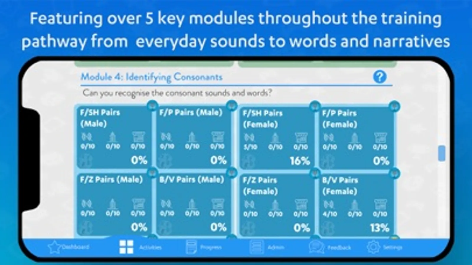 It features dynamic pathways covering 5 key proven modules and 30+ fun activities focused on learning a specific part in the hearing journey of new sounds.