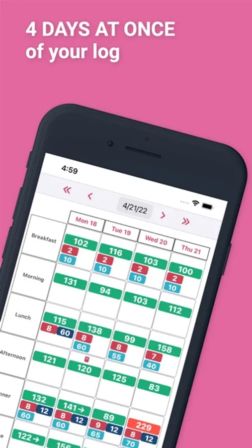 See 4 days (7 on iPad) of your blood glucose tests and meds intake in a single screen, designed specifically to help you see evolutions and compare data from one day to another.