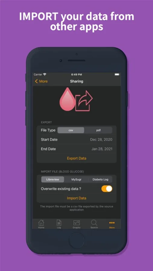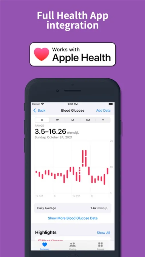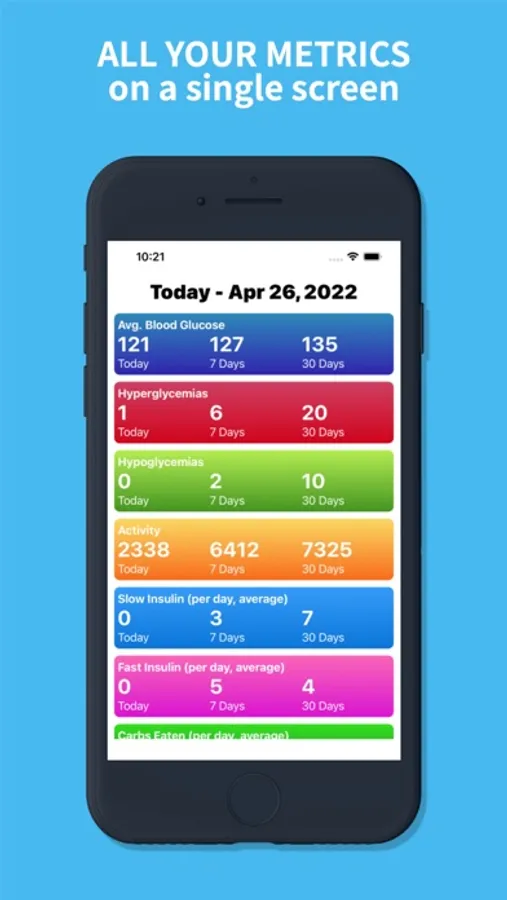 * Automatically import your activity, blood glucose and insulin intake data from the Apple Health App