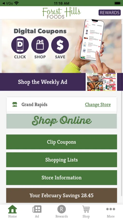 The Forest Hills Foods app helps customers easily view our weekly ad and save even more through our Fresh Rewards program with coupons, clubs, and rewards. Enhance your shopping experience with everything you need right at your fingertips including store hours, online shopping with the Fast Lane, and more!
