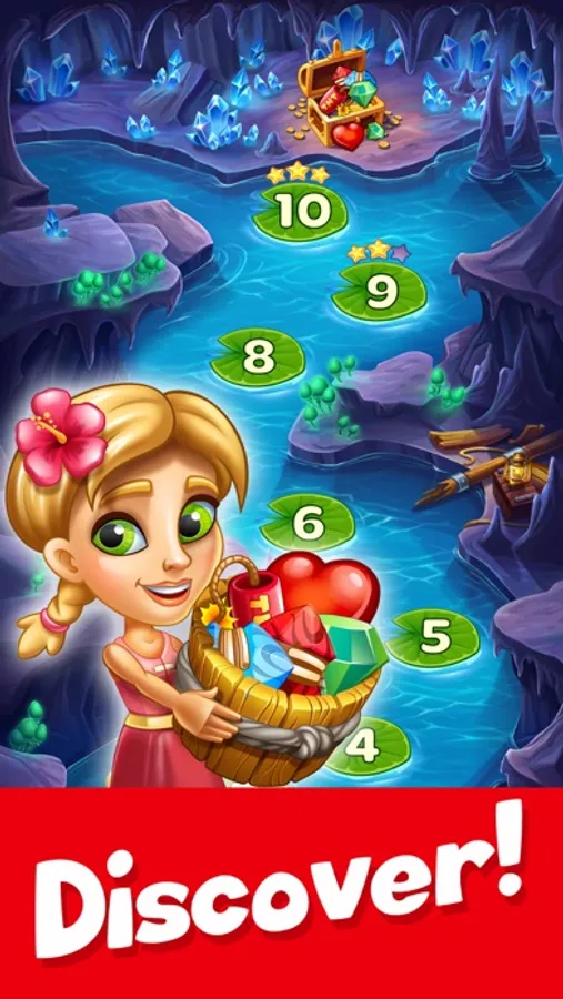 An uncharted island paradise is waiting for you to explore in this brand new match-3 adventure game! Beat match-3 puzzles to collect resources, then use those resources to build everything your family needs! Spruce up your island with beautiful decorations, from statues and plants to pets you can collect! Open up new areas of the island to expand your family’s new home, and help them turn a bit of misfortune into a lucky break!