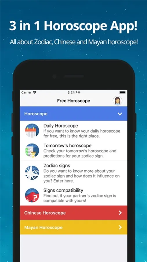 1. Zodiacal, Chinese and Maya horoscope all in 1 single App