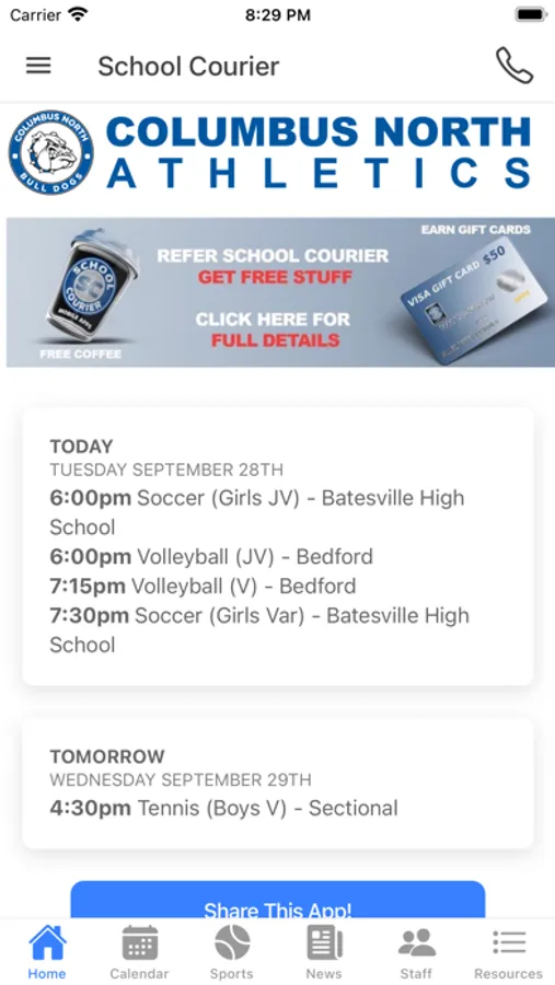 The Columbus North Athletics App for iPhone, iPod, and iPad allows students, faculty, coaches and parents to keep up to date with Columbus North sports information and news.