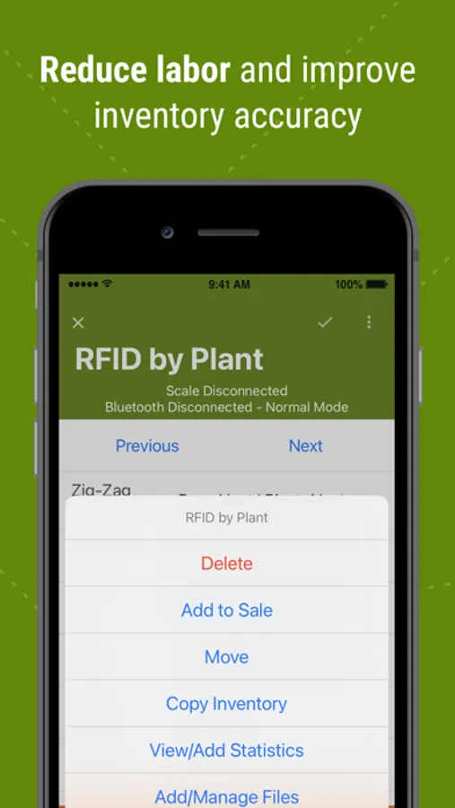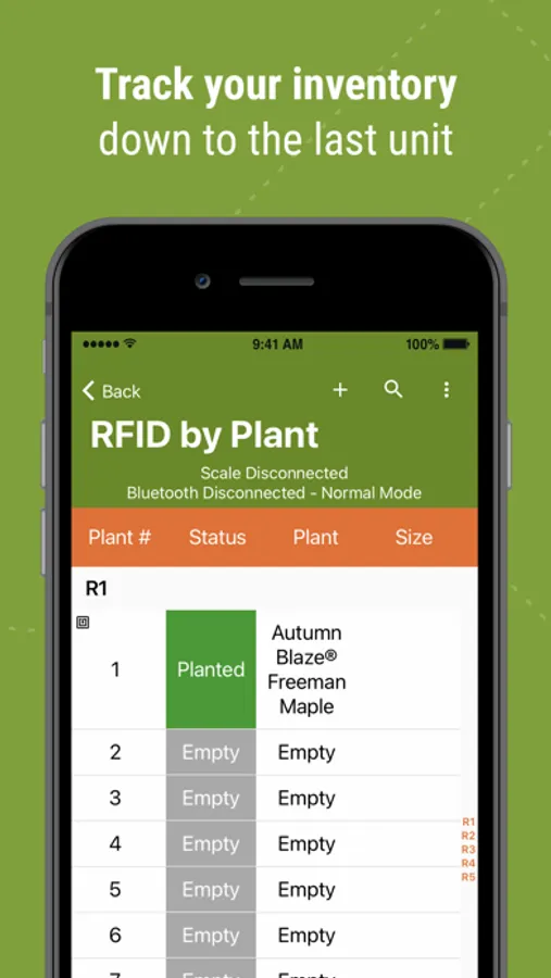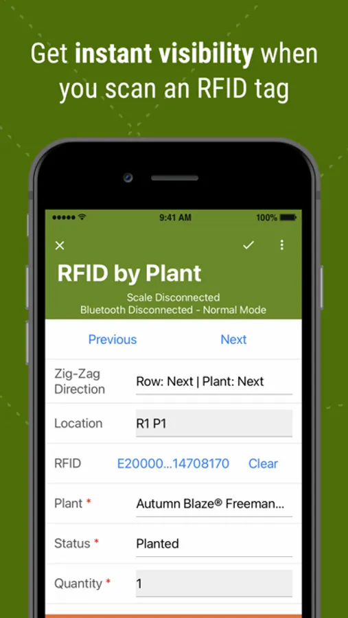 The app allows customers to take live inventory counts on their phone or tablet while in the field. It synchronizes your device with a radio-frequency identification (RFID) scanner. This allows the user to scan individual trees and manage data accordingly.