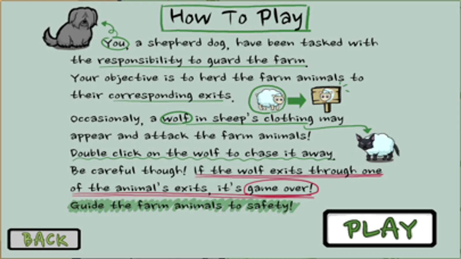 Help our loveable sheepdog herd the wandering farm animals into their homes, but don't get them mixed up! And watch out for that pesky wolf!