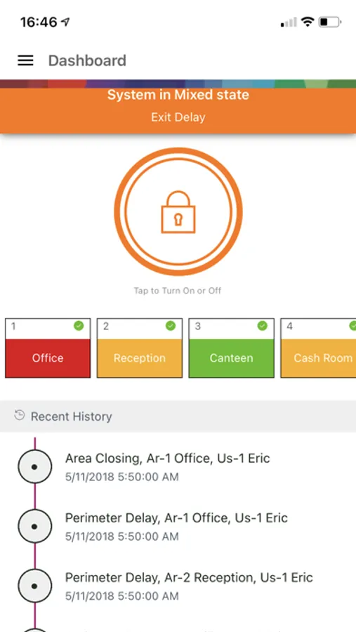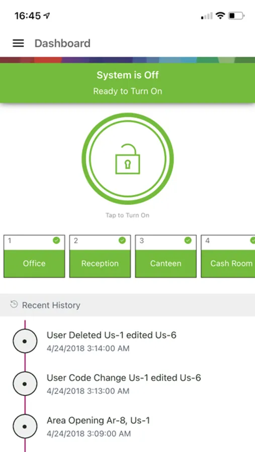 - Get event-driven push notifications, which you can filter by alarms, open/close events, system events and access events
