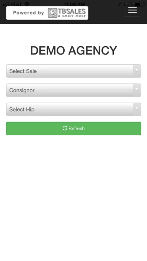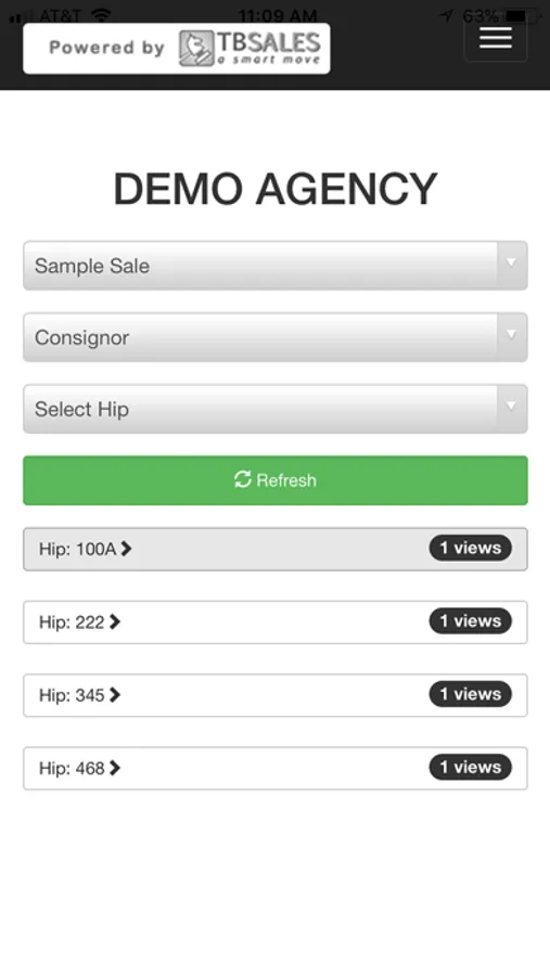 This app is designed to allow owners and consignors "quick&easy" access to sales information. Select the sale from the drop-down menu and the interface will display buttons for each of your horses in that sale.