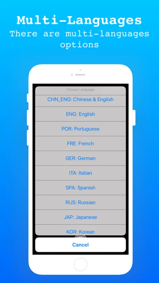 · Support languages:Chinese, English, Portuguese, French, German, Italian, Spanish, Russian, Japanese, Korean