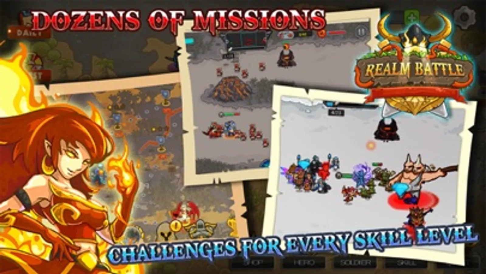 Realm Battle offers variety and challenge. Overcome incredible odds with strategy and wit!