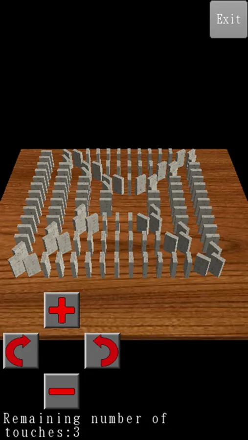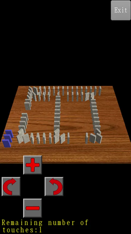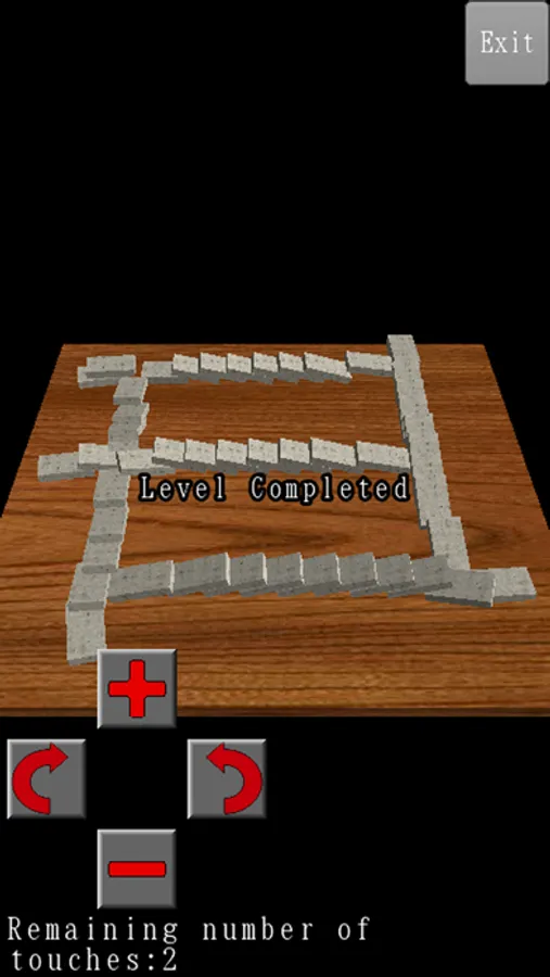 The level is completed when all dominoes are knocked down within the specified number of touches.