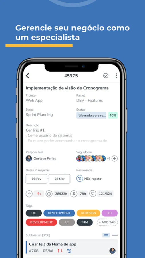- Visualize, crie, edite, planeje e delegue tarefas;