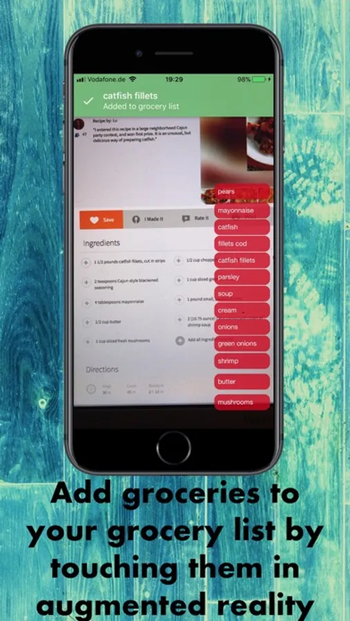 - Manage your grocery list with ease, add groceries to the list by touching on them in the augmented reality view