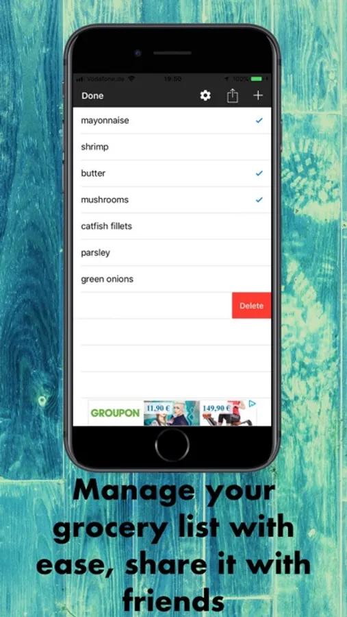 - Share your grocery list with other people via SMS, Mail, WhatsApp, Facebook, Twitter etc.