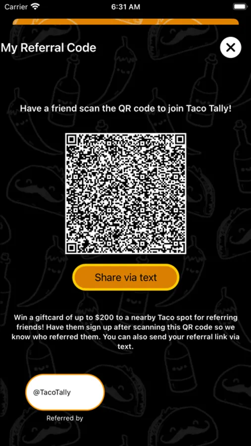 Taco Tally is meant for the Taco lover to Tally up their eats. We work on an honor system since we can't validate your Tacos. But compete with friends and family to see who can Tally up the most Tacos. Now get the Countin'.
