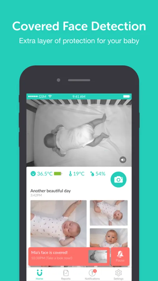 The first baby monitor to apply AI to Baby Sleep, Safety, and Memories. Our AI Safety Detection grows with baby for Covered, Face, Crying, Sleep Analytics, Auto Photo Capture, and lots more.