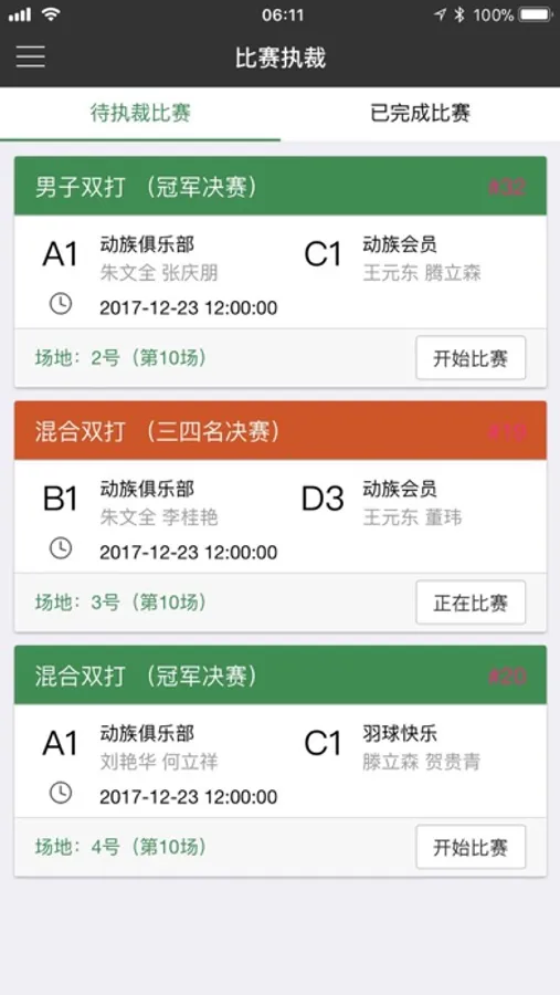 羽毛球比赛专业版电子执裁系统,羽毛球比赛的专业级赛场管理系统。EMMS 比赛赛事管理系统(羽毛球专业版)以“运动员注册管理系统”的注册信息为基础,应用信息化手段,实现各单项、团体赛事的远程报名、扫码支付、运动员审核、电脑抽签、秩序册自动生成、现场编排、电子执裁、现场屏显、现场打印及成绩自动化处理、成绩册自动生成、成绩信息的即时发布、综合成绩(名次、总分、奖项情况)的即时统计与发布等功能,可规范赛事事物的管理,并可大大减轻赛事组织的工作量及时效性。