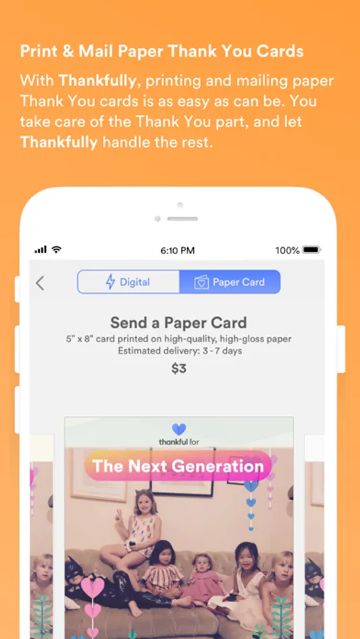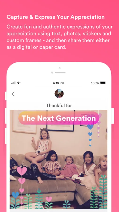 Create fun and authentic expressions of your appreciation using text, photos, stickers and custom frames - and then share them either as a digital or paper card.