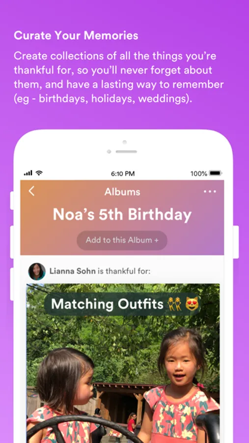 Create collections of all the things you’re thankful for, so you’ll never forget about them, and have a lasting way to remember (eg - birthdays, holidays, weddings).