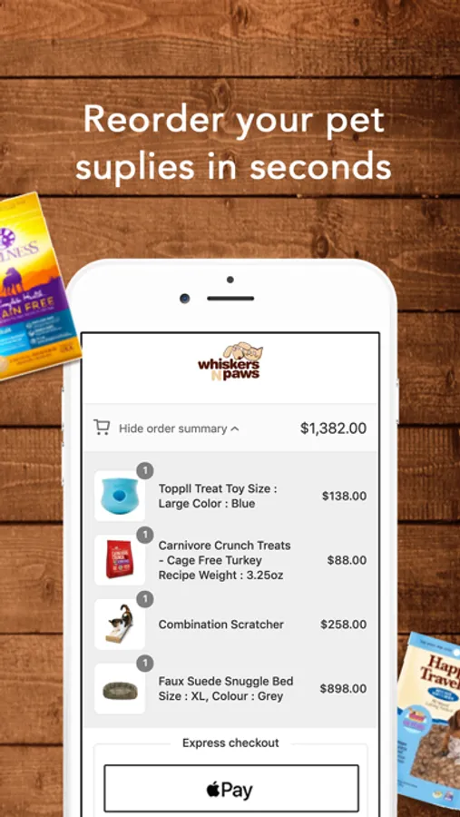 Order your pet supplies in seconds with Whiskers N Paws. Free delivery!