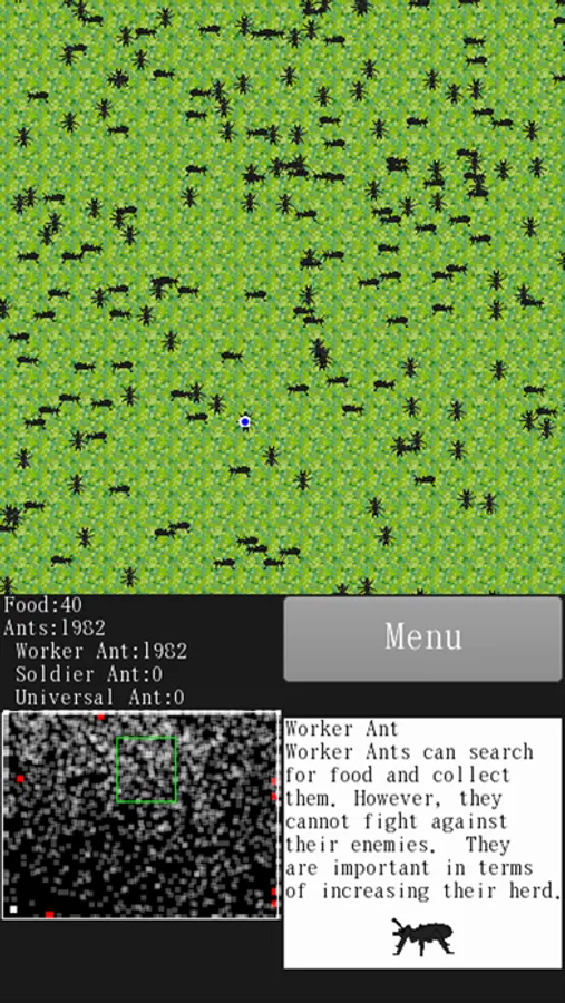You can observe their various activities such as searching for food and fighting with their enemies.