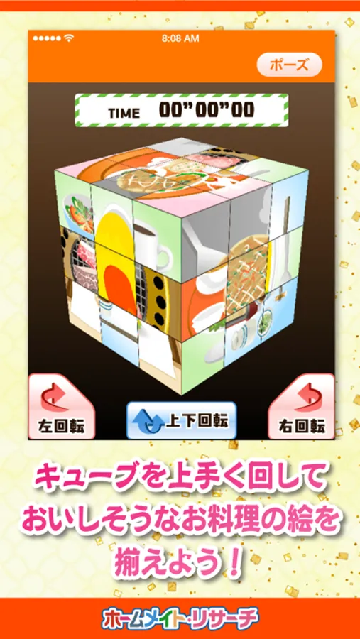 キューブを上手く回しておいしそうなお料理の絵をきれいに揃えましょう!