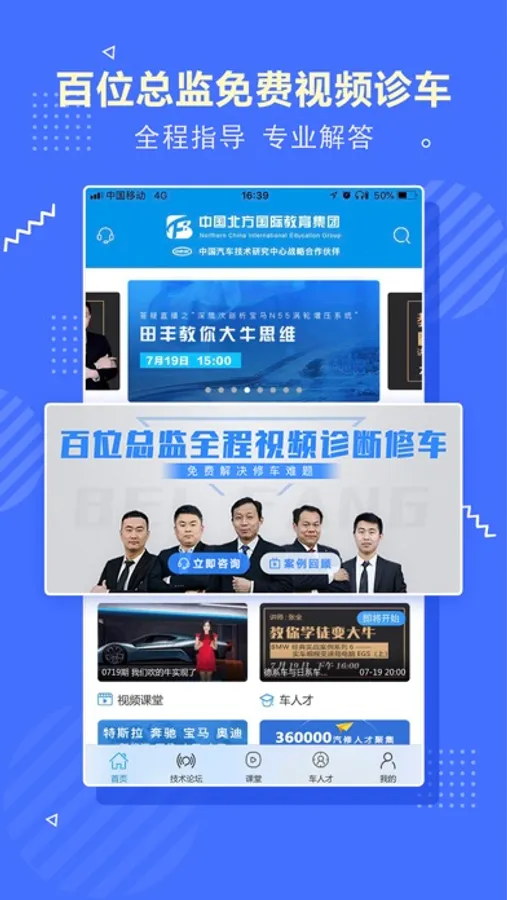 1.名企总监直播课堂:每天多期视频直播,由汽车行业名企的总监级专家,亲自详解工作中常见问题,分享一线工作心得,帮助学员快速积累经验。课程内容包括汽修基础知识、故障案例、经典实操课堂、电动汽车修理系列实战案例、奔驰宝马奥迪系列实战案例、汽车改装、汽车最新资讯、无人驾驶课堂等。