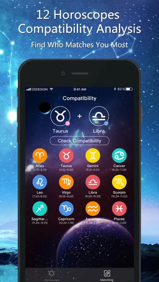 - Love: Select the zodiac sign to get a love compatibility report about two of you;