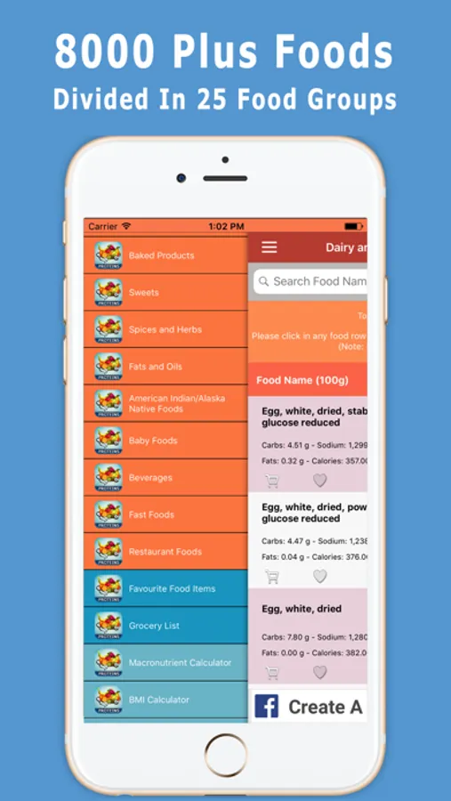 • Proteins and carb nutrients for each food item