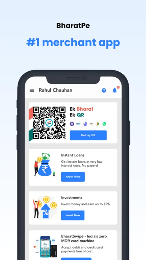 BharatPe is a payments app that allows merchants to accept payments from any UPI app - PhonePe, PayTM, GooglePe, BHIM, and 150+ others with your BharatPe QR. Additionally, customers can pay through multiple modes like Bank Account, RuPay Credit card and Wallet etc on BharatPe QR.