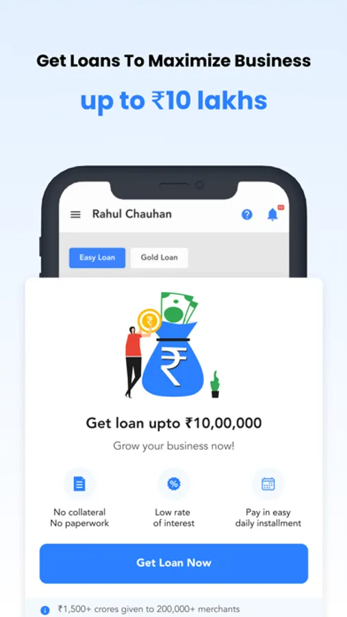 BharatPe provides loans at a very low-interest rate and without any paperwork. It is a 100% online application process, without any security or guarantee. You can repay the loan amount through Easy Daily Installment (EDI).