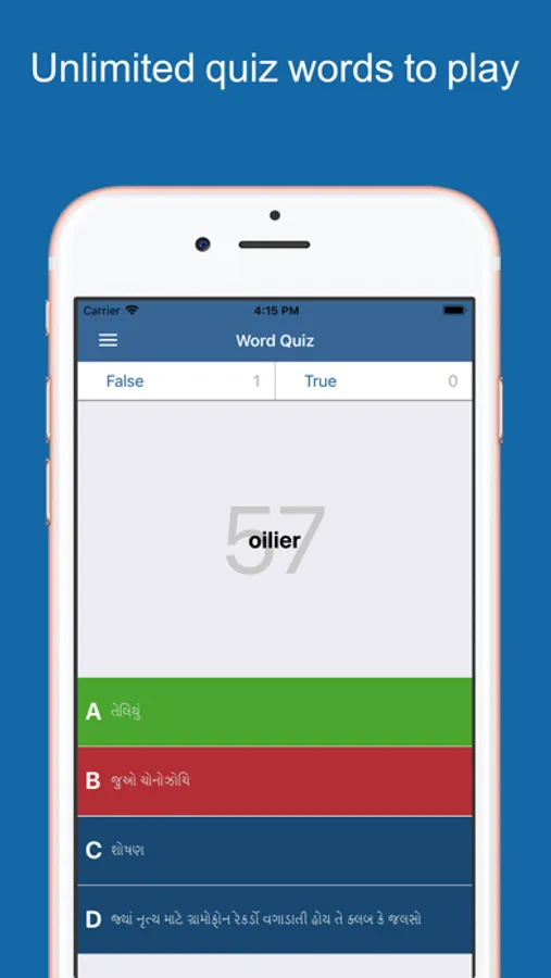 - We developed a new quiz inside Gujarati dictionary! To take the quiz, you can easily tap the option icon in the top left side of the screen and choose quiz. Now, you will see a word in the screen with 4 answers, you will have to tap the answer that you think its right to see if it’s the good choice or not. Keep in mind, that there is a countdown timer and if it finishes without a reply from you, then the quiz will ends.