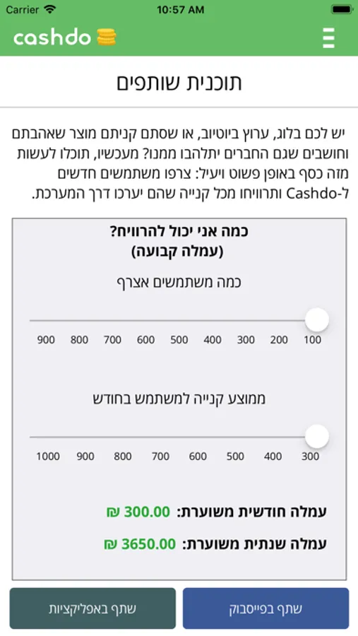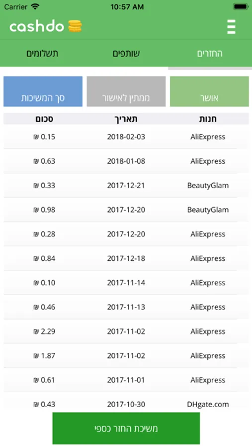 אפליקציית קאשדו תעזור לכם לקבל חלק מסכום הקנייה בחזרה ישירות לחשבון הבנק, פייפל או גיפטקארד.