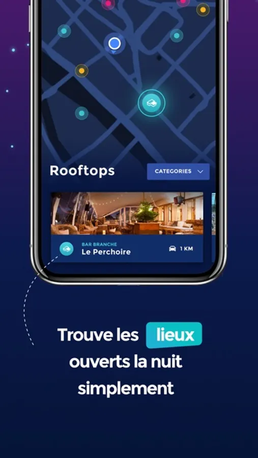 Besides 30 000 events proposed by years, GoNight propose to its users a real time Map showing every trendy and atypical places ( restaurants, bars, rooftop, night club… ) open around and at every night’s hours !