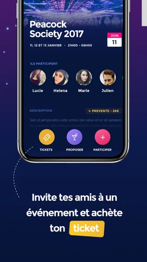 Its partnerships with Digitick and Fnac allows to the application to propose a huge catalog of events ( parties, concerts, festivals, shows… ) daily updated.
