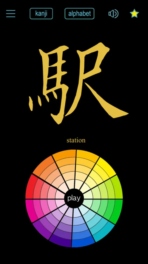 The App lists Hiragana(平仮名) and Katagana(片仮名) and 2,136 most-used Kanji(漢字) with their readings. You can select the character in alphabetical order by clicking “kanji” in the menu bar.