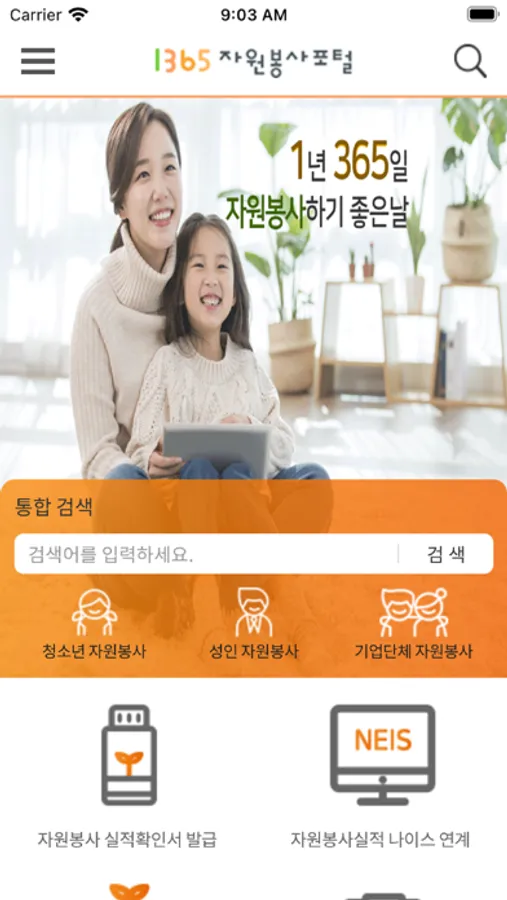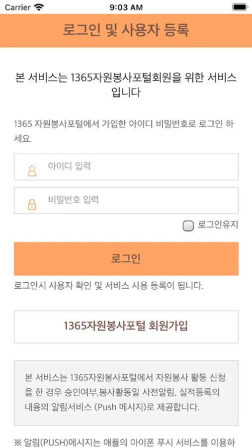 1365자원봉사포털에서 신청한 자원봉사에 대해 관리자의 자원봉사활동 승인 여부 및 봉사활동일 및 시간의 내용이 Push 메시지로 제공 됩니다.