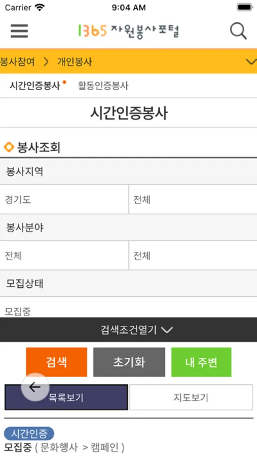 봉사 활동 후 해당 수요처 및 지역자원봉사 센터에서 봉사실적을 등록 한 경우 승인 내역이 Push 메시지로 제공 됩니다.