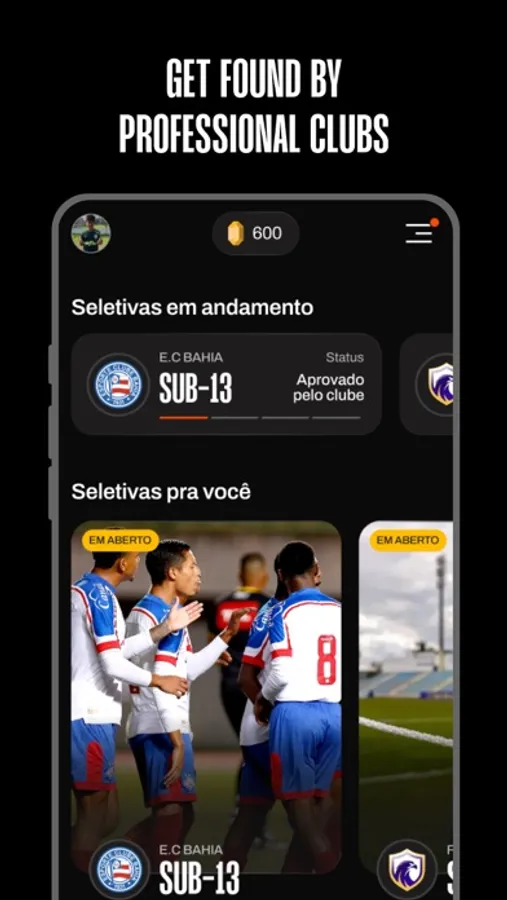 Participate in big club tryouts within the app - just register, upload your best video and wait for the evaluation result.