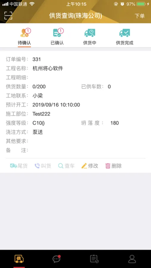 将心混凝土配套的工地系统是针对混凝土搅拌站行业的客户对象推出一款APP,可预先计划好工地对混凝土需求进行即时或计划性的下单要货。可实时掌握搅拌站对工地的发货发车货款等情况。更可在多个搅拌站之间切换下单叫货。