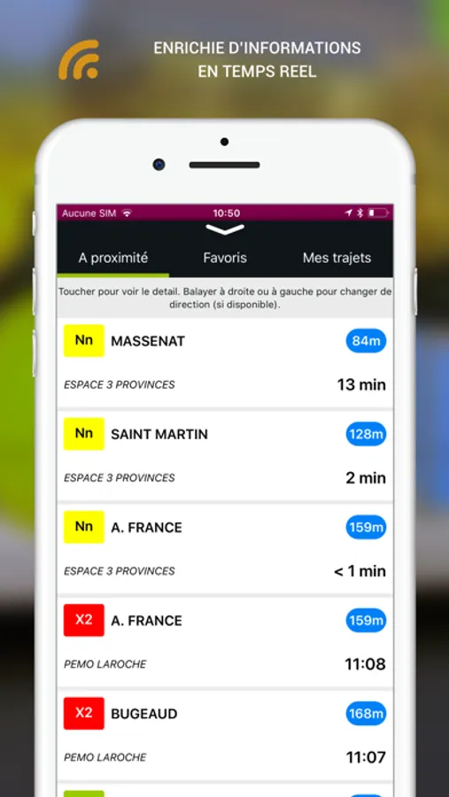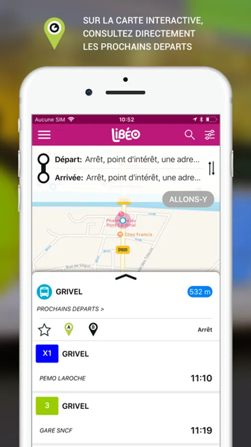 • Consultez les horaires en temps réel des prochains passages de bus aux arrêts de votre choix,