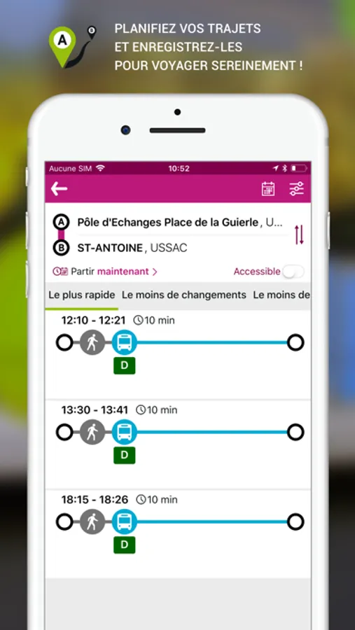 • Trouvez rapidement l’itinéraire adapté à votre déplacement.